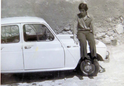 Y este es el primer Renault 4-L, Súper que compró mi padre para el negocio del bar. Ahí aparezco yo con el pelo lo más yeyé posible. Año 1975, aprox. |