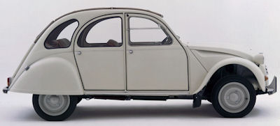 Citroen 2CV, Descapotable, como el de Celso (Sonlleva Fuentes). A este modelo lo llamaron, justificadamente, el coche de los curas. Se podía arrancar, como todos los Citroen, a manivela. |
