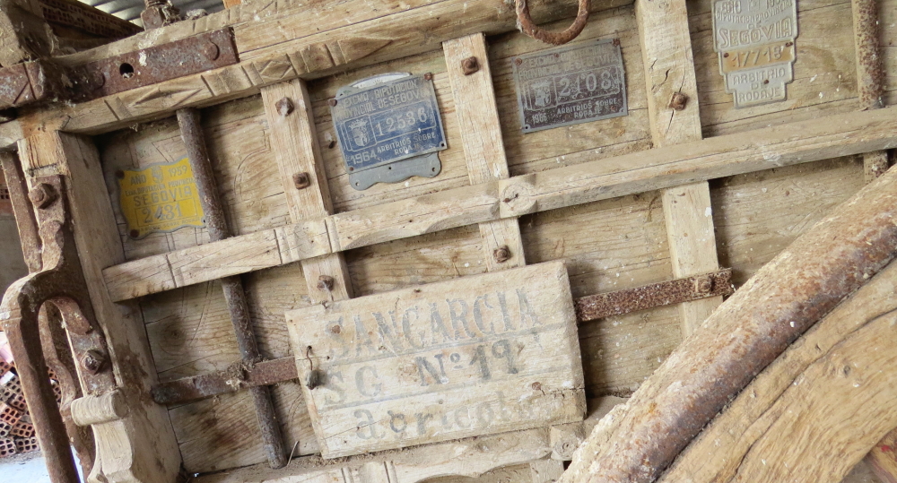 Carro de mi suegro, Andrés Garcisánchez, de Sangarcía, con su tablilla y sus chapas anuales del pago del arbitrio sobre rodaje.