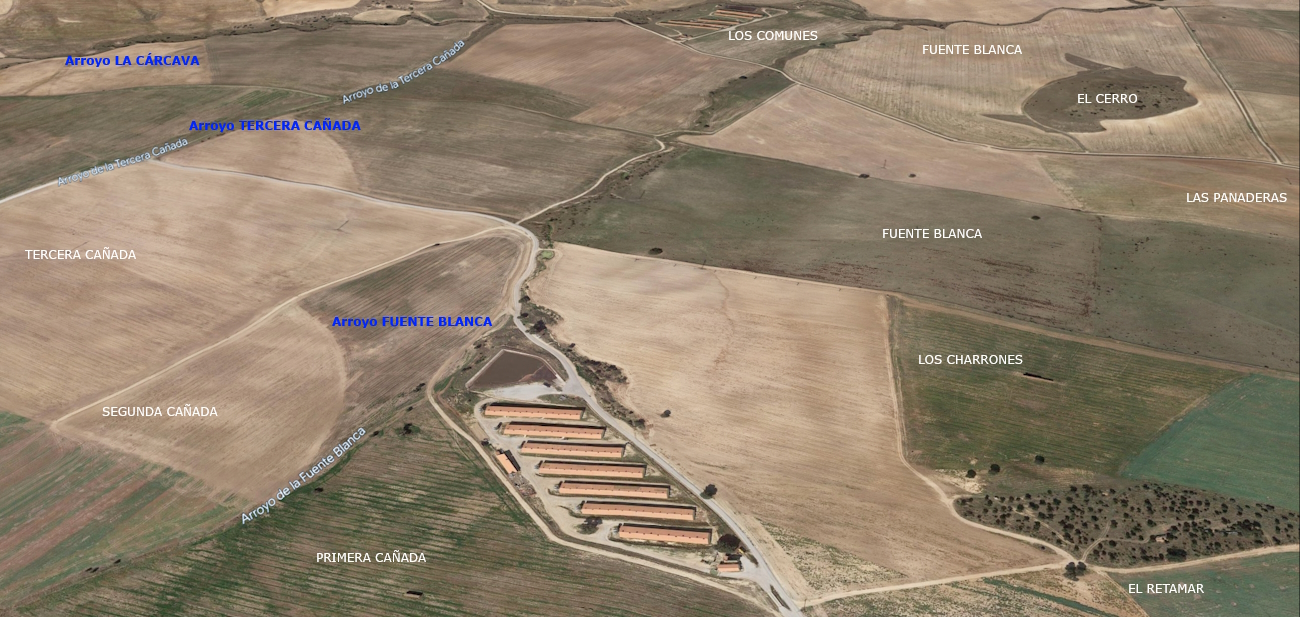 Una parte considerable de esta superficie se destina a los cebaderos industriales de cerdos, con siete naves y una balsa de purines.