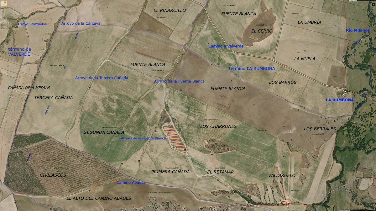 Territorio colateral al Camino Abades, a la derecha sentido ídem., que se inicia en El Cañuelo y acaba en Civilascos.