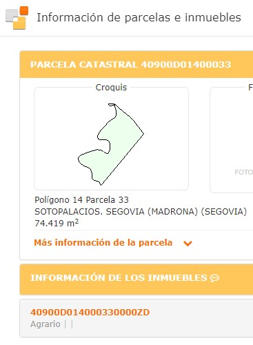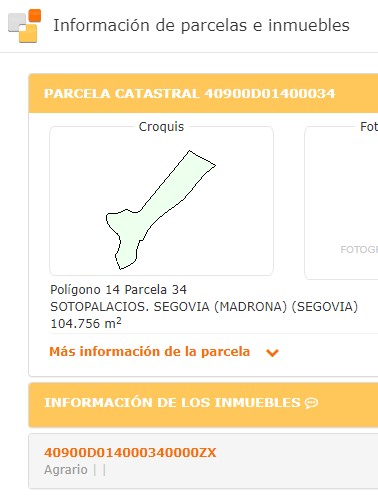 Figura en el Catastro como el Polígono 14, parcelas 13 (6.789 m2.); 33 (74.419 m2.); y 34 (104.756 m2.) Unas 18,6 hectáreas.