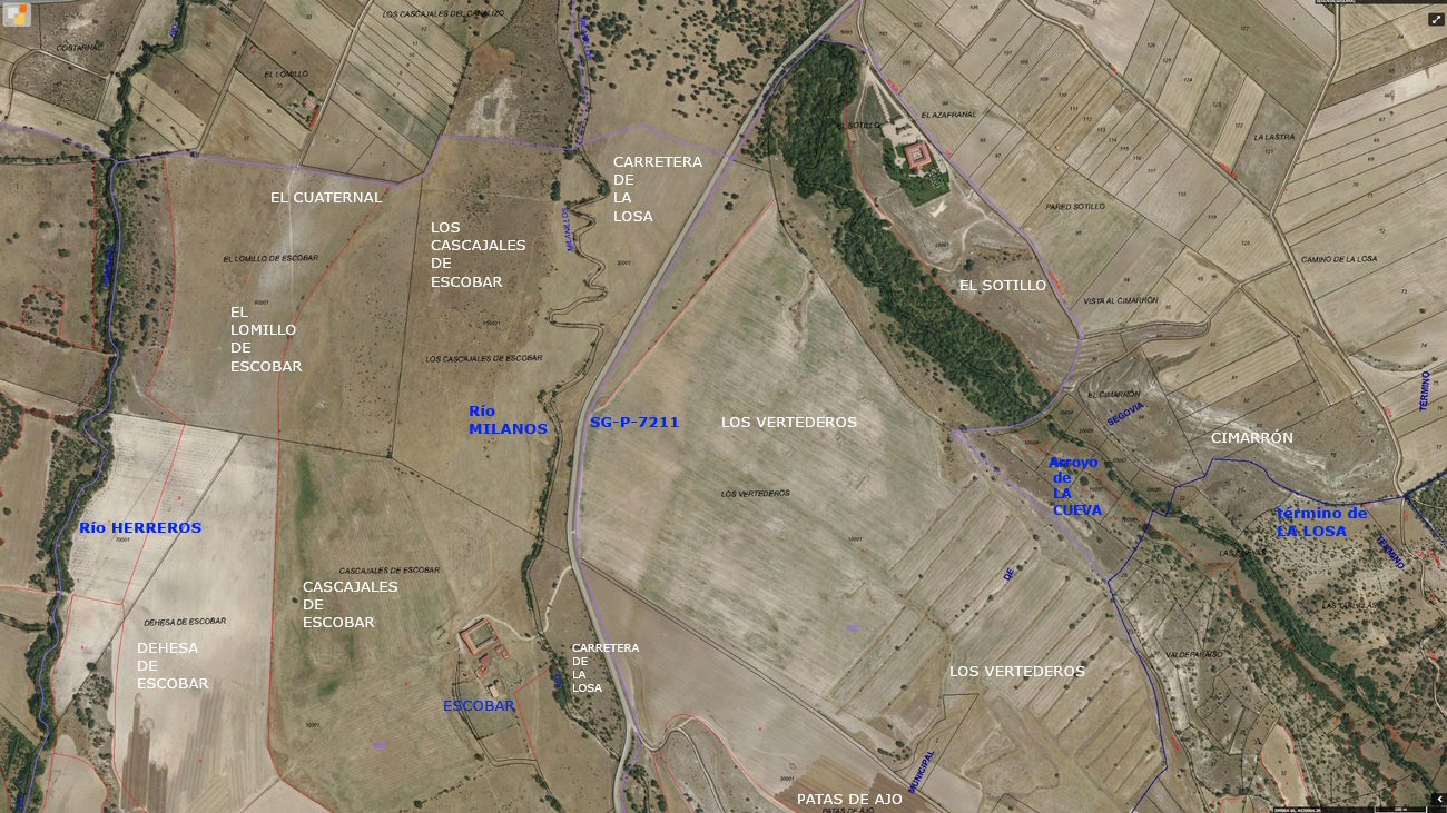 La 4001 es el espacio que se interpone entre dicha carretera y el caserío de Escobar y está conformado por el Río Milanos y la SG-P-7211.