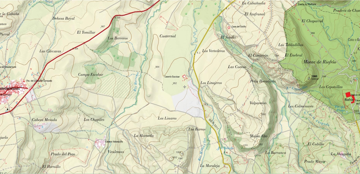 Lo sitúan los mapas del IGNE y del SIGPAC inmediato a la carretera N-110, en la misma latitud y entre los parajes de El Tomillar y El Cuaternal.