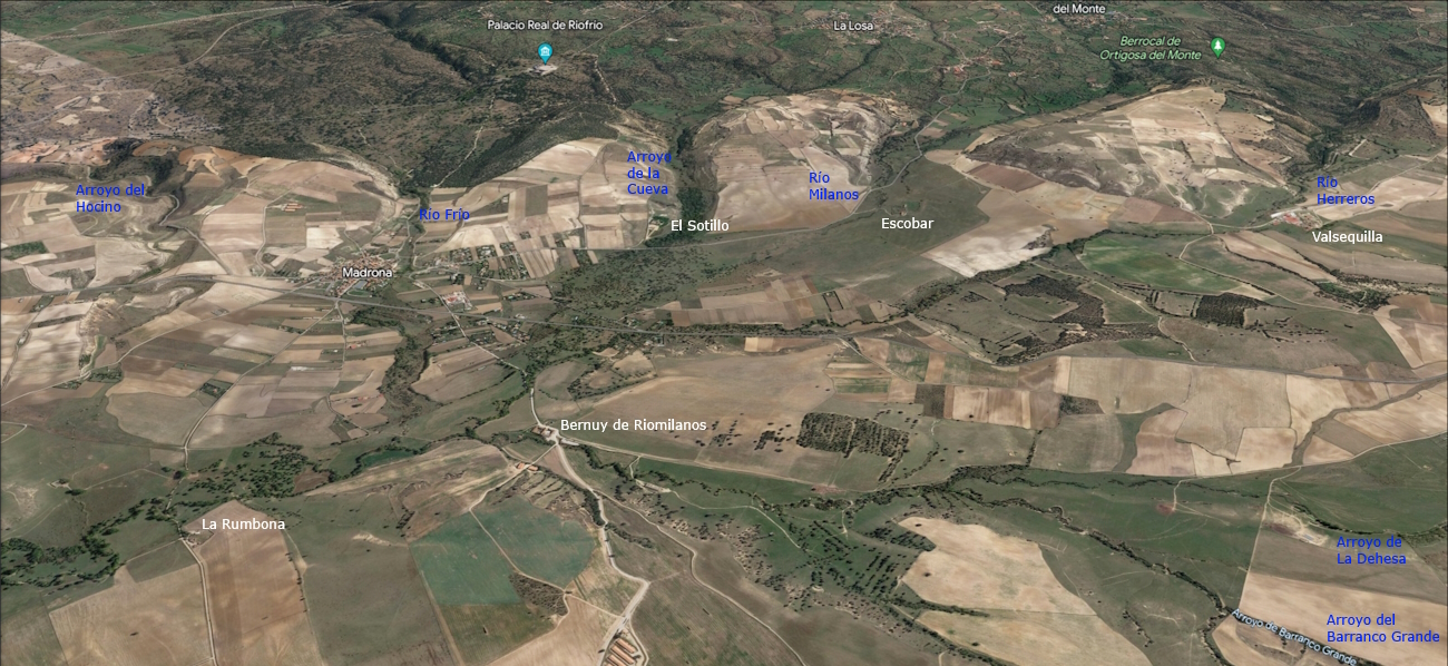 Es una de las cinco depresiones que conforman el territorio de piedemonte de los términos de Madrona, junto con el Arroyo del Hocino; el Río Frío, el Río Milanos y el Río Herreros.