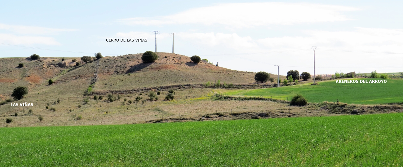 La infografía del SIGPAC tampoco propone ningún topónimo para este entorno que en Madrona designamos como Cerro de las Viñas, aunque sí nos proporciona el dato de su altitud: 964 metros.