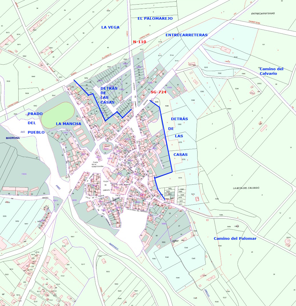 Se identifica con este topónimo toda la parte Este del caserío cuyas casas y edificaciones lindan con las tierras de labor sin calle ni camino interpuesto, salvo una serventía que pare de la SG-724 para dar servicio agrario a toda la serie de parcelas situadas entre ésta carretera y el Camino del Palomar o de La Lastra.