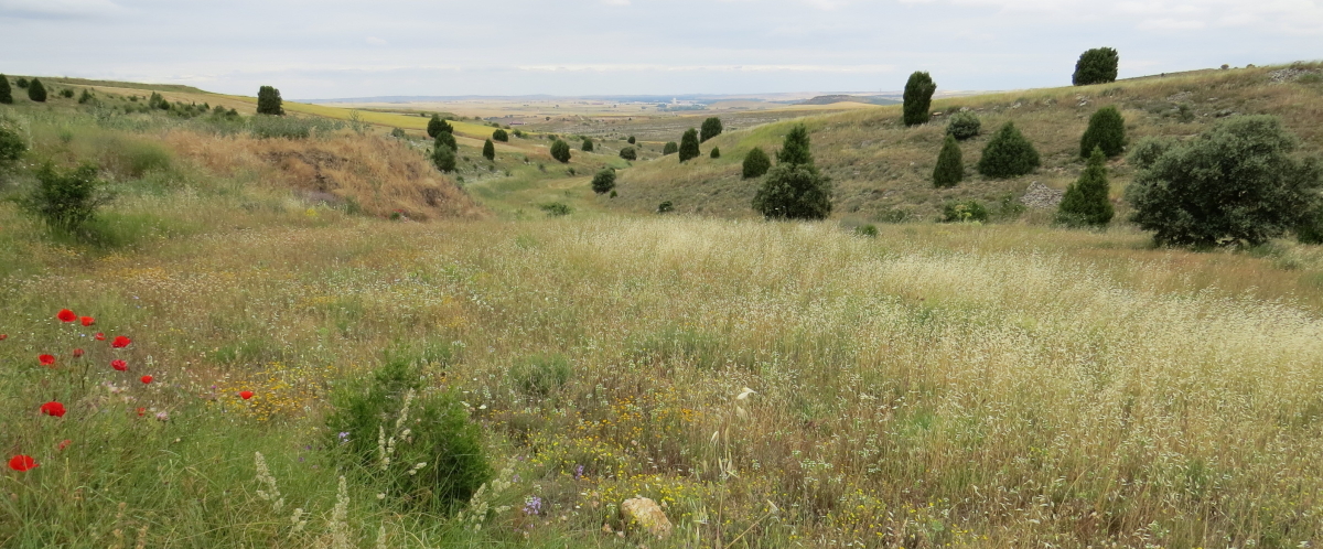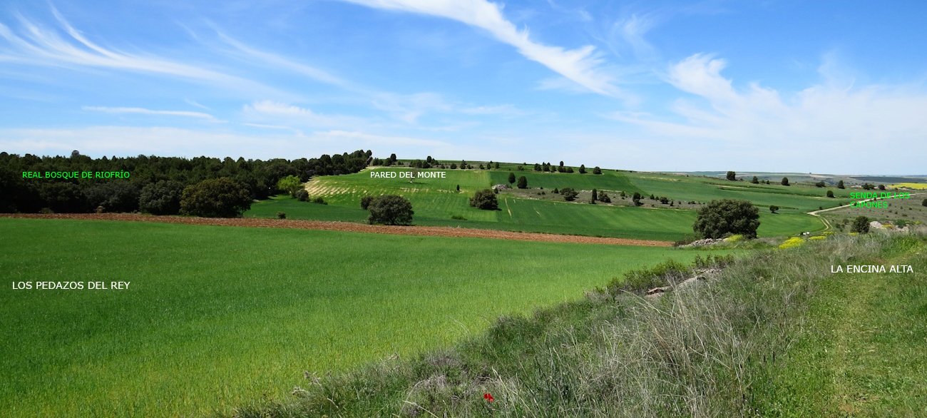 Linda con la pared del Bosque de Riofrío y el paraje de Los Pedazos del Rey o, como figura en el Catastro, La Lastrilla, topónimo que comparten en este paraje los términos de Madrona y Hontoria.