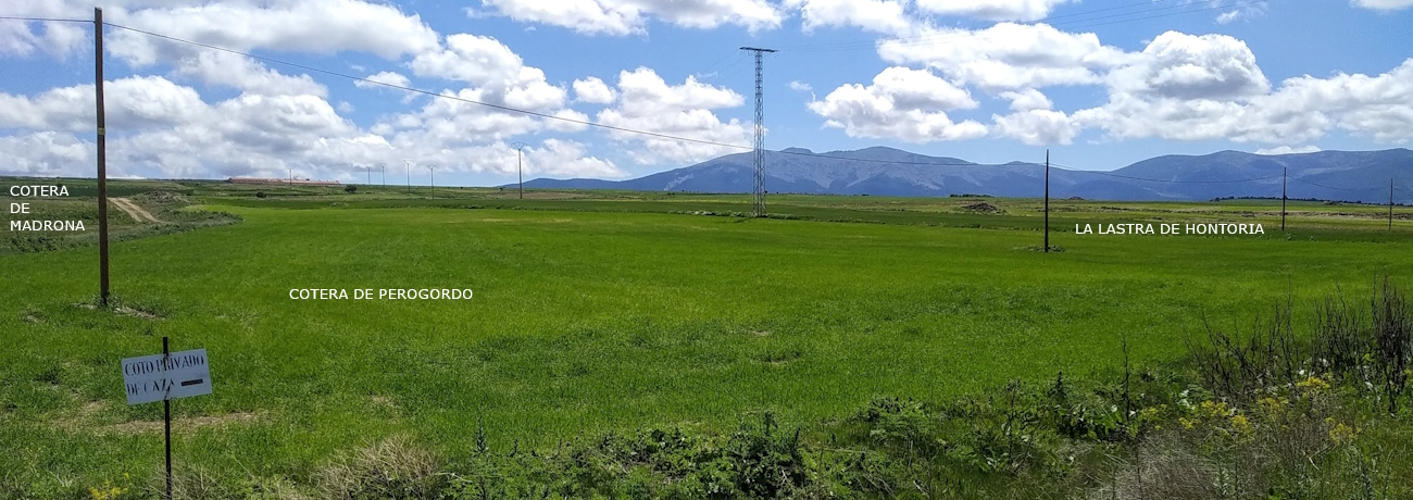 Linda según se indica: al Norte, Pedazo del Conde, del término de Perogordo; Sur, Camino Madrona – Hontoria, Las Cogujadas; Este, término de Hontoria ; Oeste, carretera N-110, Los Pradejones, Las Bragas.