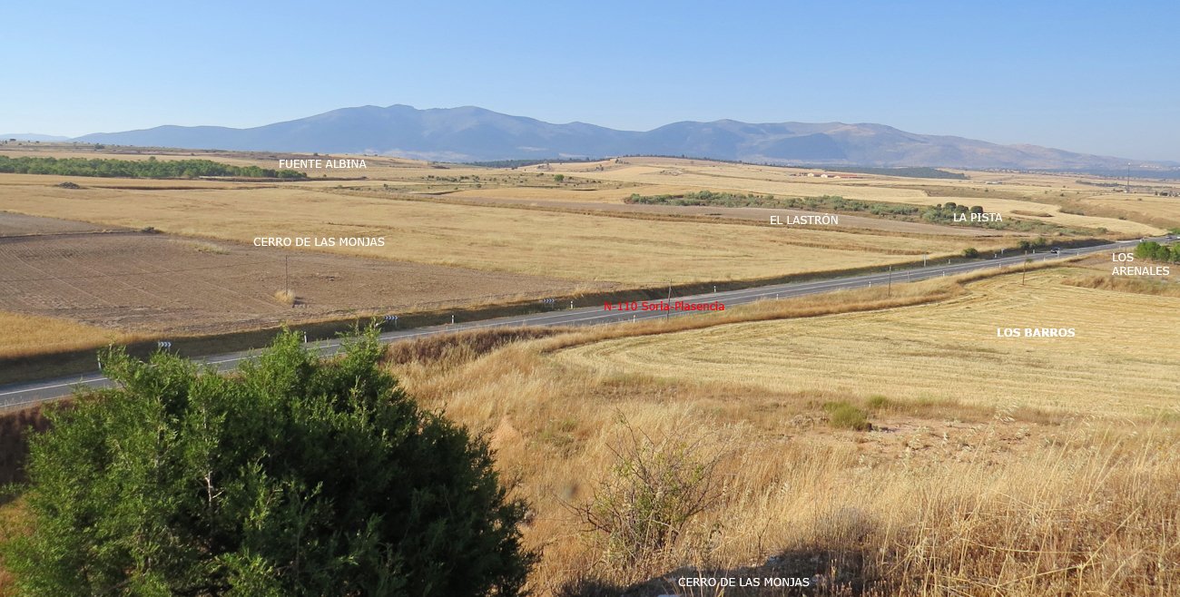 Se encuentra entre los parajes de La Pista y el Cerro de las Monjas, los tres linderos con la carretera N-110.