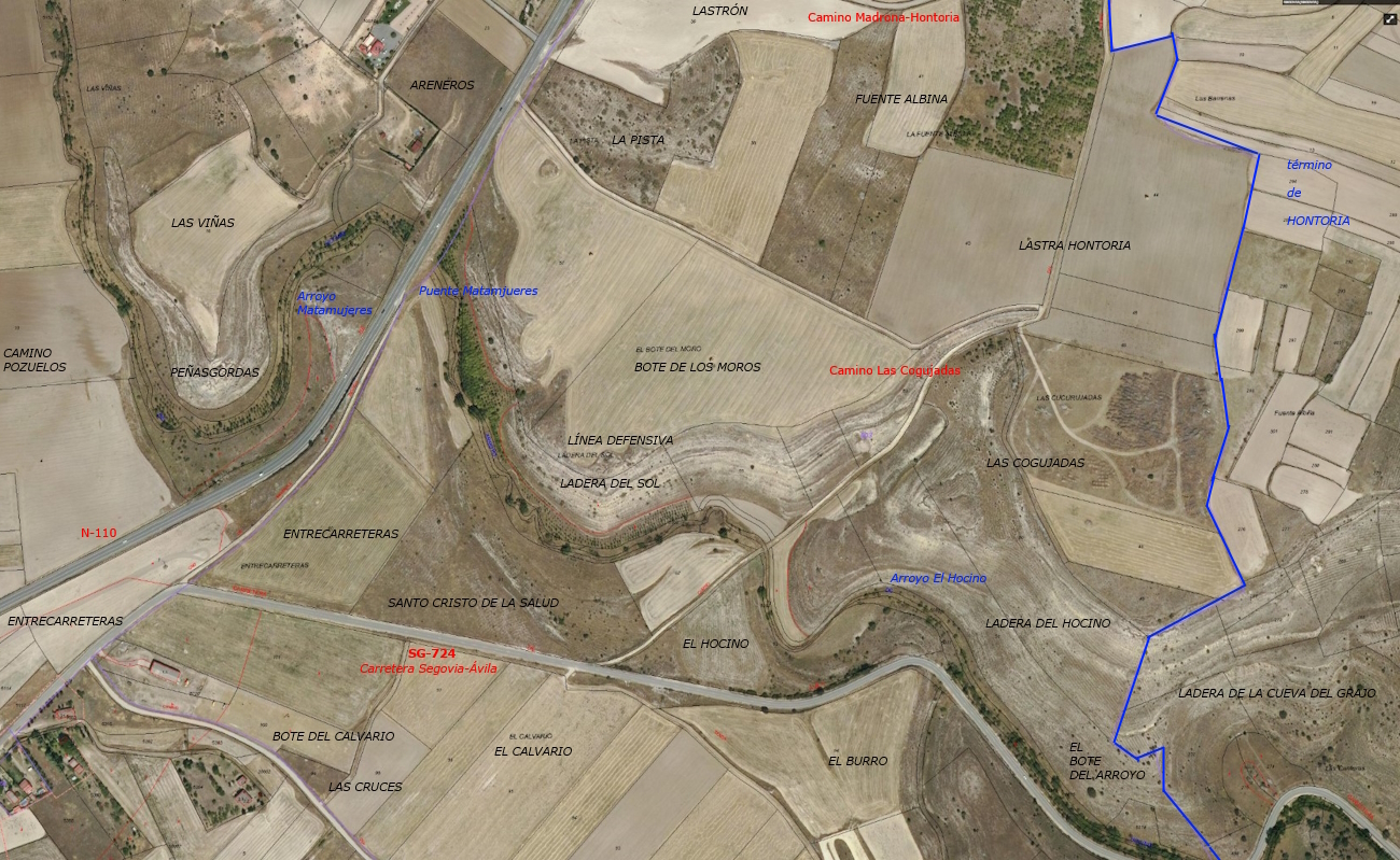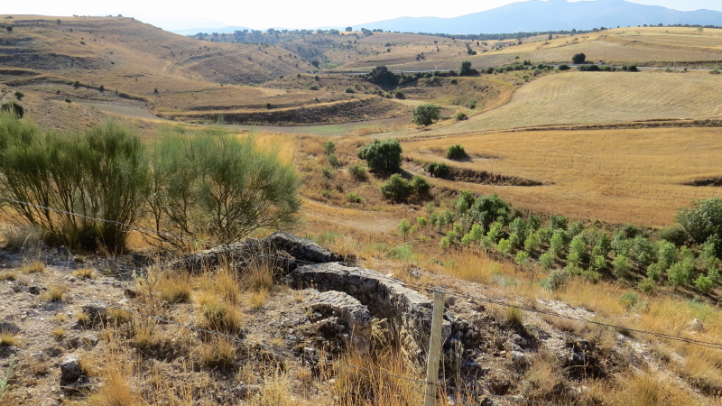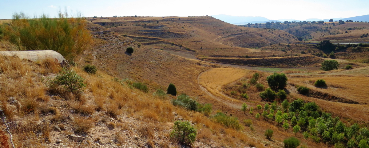 Puesto de tiro orientado hacia el Valle del Hocino, carretera y Sistema Central.