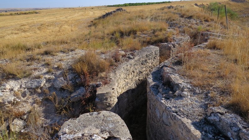 Las tricheras tienen su mitad inferior excavada en la roca.