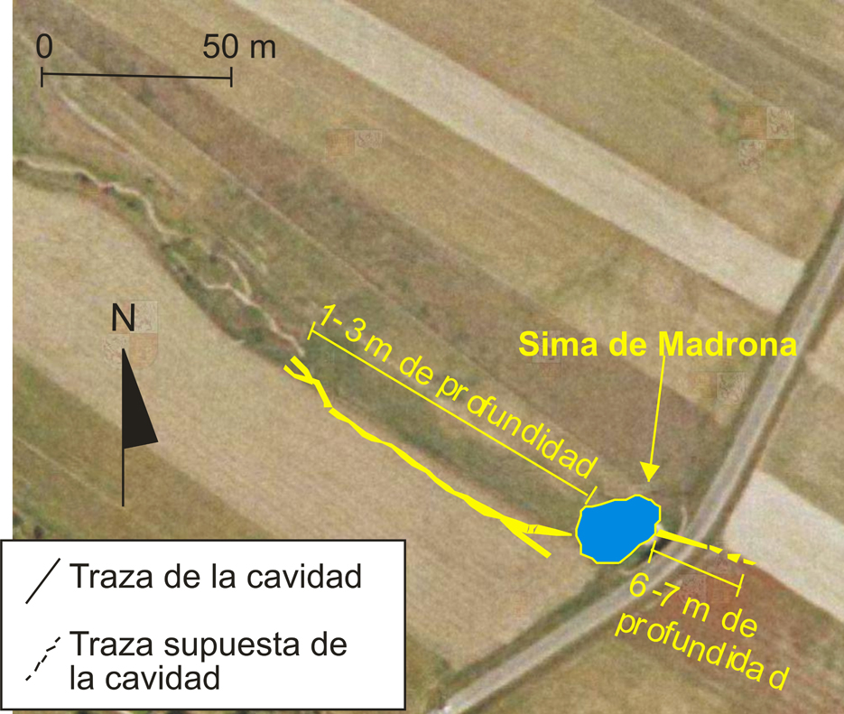 de una cavidad kárstica (denominada Sima de Madrona o Sima del Moro).