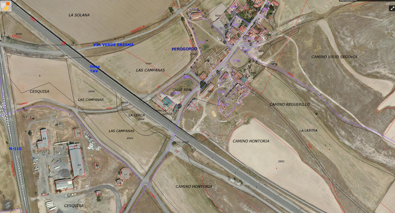 Doblemente circunvalada: primero por la línea TAV, como se puede apreciar en la ficha topofráfica del Catastro y, tras esta línea, por el paraje Las Campanas.