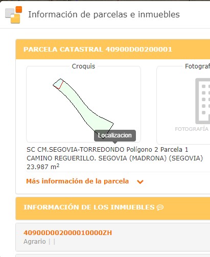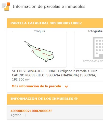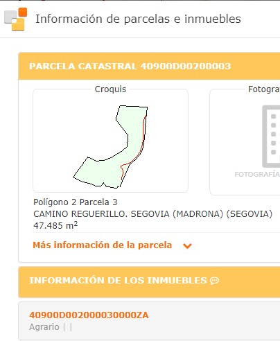en la ficha catastral a Camino Reguerillo, con una superficie de 192.306 m2