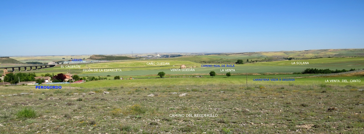 En cuanto a su nombre, si consideramos que antaño dicho Camino Real de Ávila debió experimentar mucho trasiego, junto con la antigua carretera a Segovia que cruza por la población de Perogordo, no es descartable que hubiera en esta zona estratégica, pródiga en caminos, otra venta, además de la de Guedán, para satisfacer necesidades de los viajeros y transportistas.
