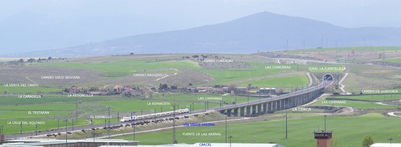 de Segovia; Este, Vía Verde Eresma, La hornera, Camino Segovia; y Oeste,