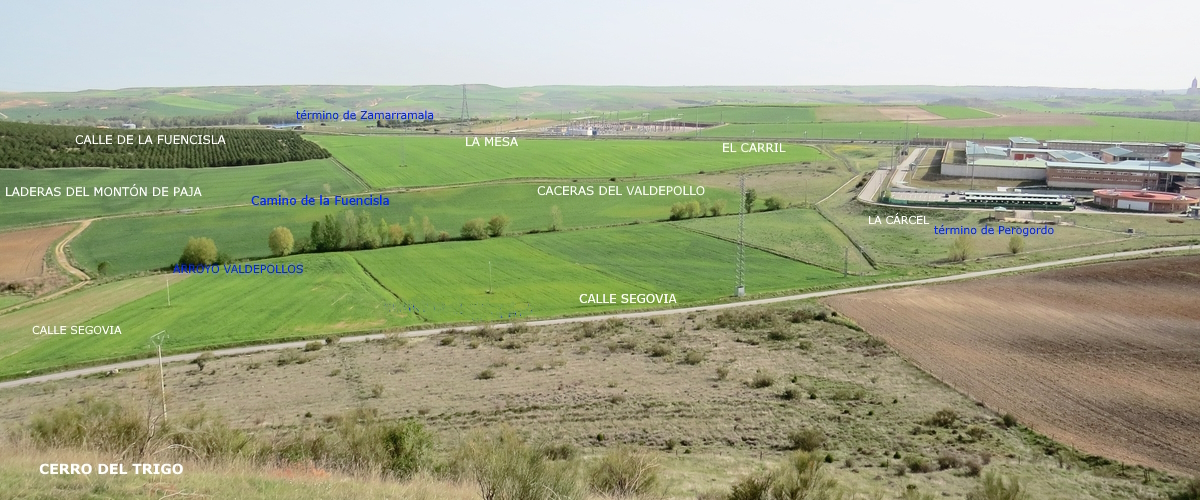 con Zamarramala); al Sur, Caceras del Valdepollos, Camino de la Fuencisla, cárcel;
