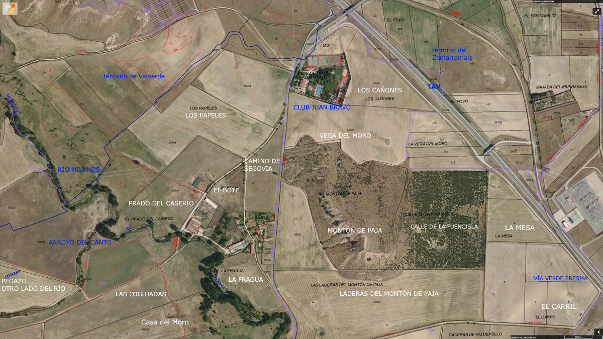 como linderos, al Norte, el paraje de Zamarramala, La Vega del Moro; al Sur,