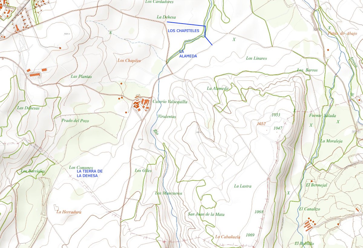Los Chapiteles se encuentra en el interior del ángulo que forman los caminos de Fuentemilanos y Madrona - Valsequilla.