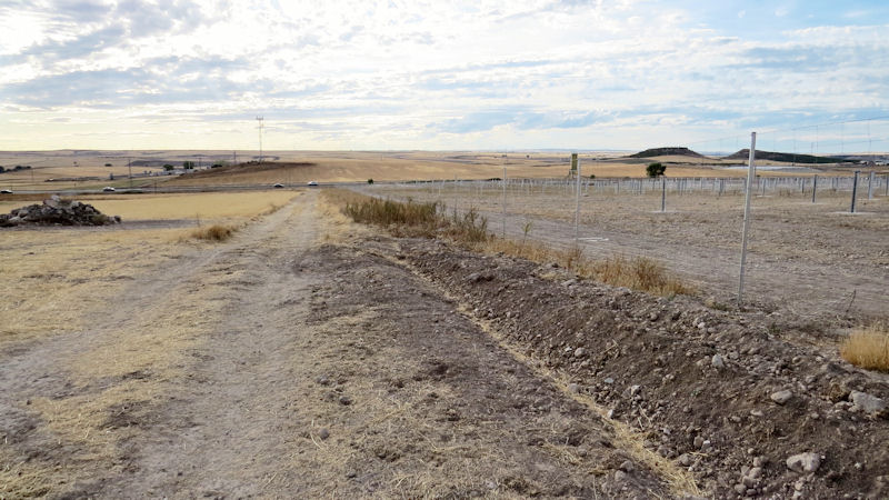 En esta imagen, obtenida con teleobjetivo, porque no dejan entrar en la finca, la tierra negra aun húmeda nos indica dónde estuvo la Fuente Zapatera.
