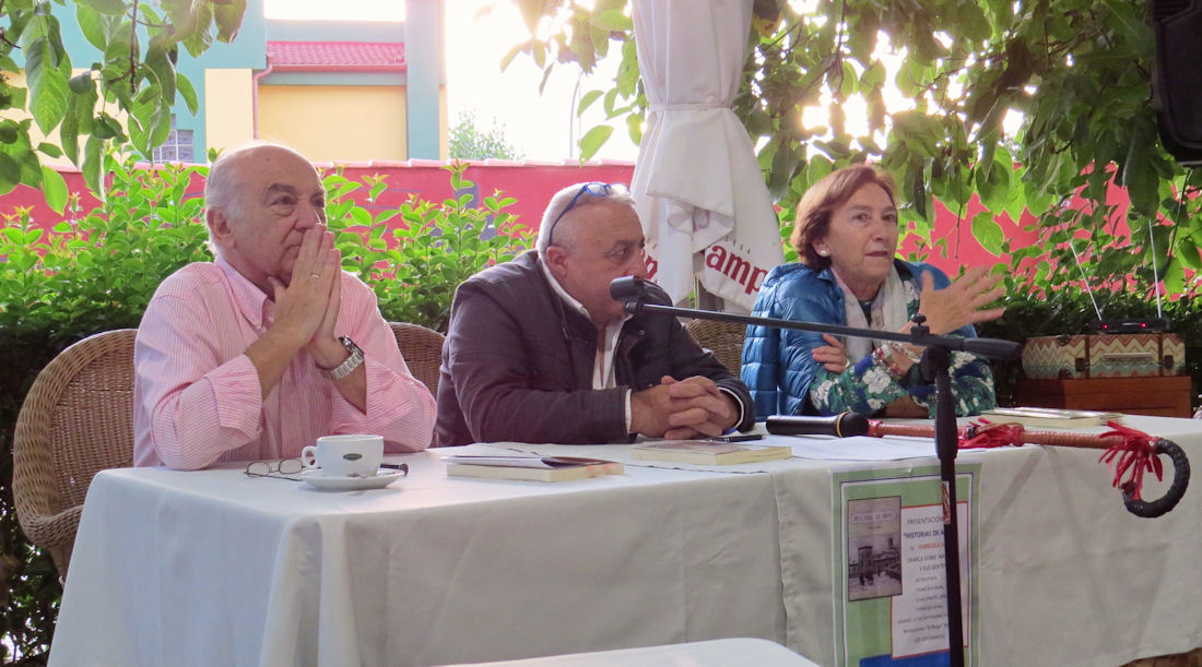 A su derecha, Francisco Avial, hermano de la autora, quien, a tenor de su exposición, luego corroborada por su hermana, ha desempeñado un papel importante en el logro del libro, por cuanto él ha asistido a las mismas reuniones familiares en las que afloraron esas historias contadas de forma espontánea en tertulias entrañables; y a él ha recurrido la autora en ocasiones para recuperar información no recordada o afianzar y dar por buena la retenida en su memoria.