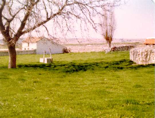 El Cercado de Félix El Lechero (Félix Bernardo Ayuso), en una imagen de 1989, aprox., con el ya entonces viejo nogal, el pozo artesiano y, a la derecha, la tinada.
