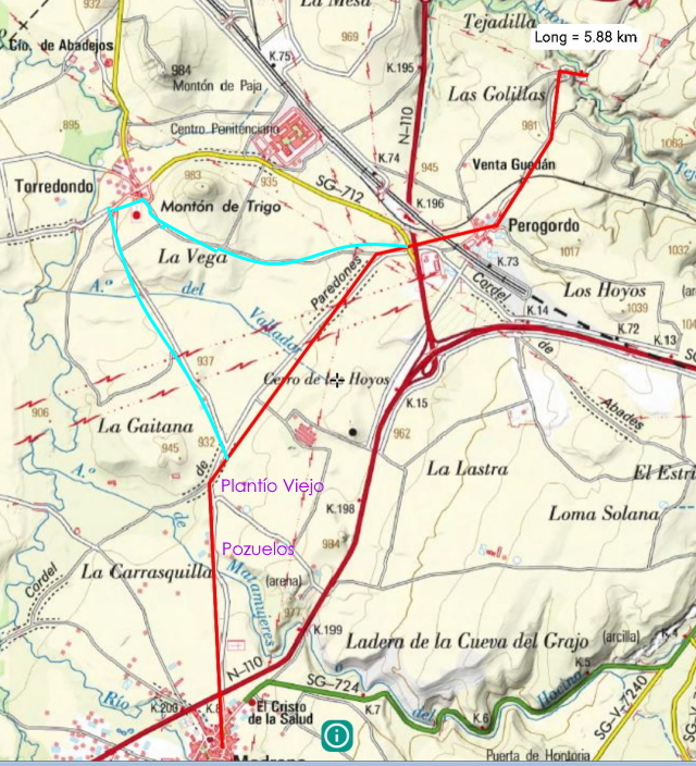Distancia: unos 12 km. para el tramo en rojo, sin Torredondo.
