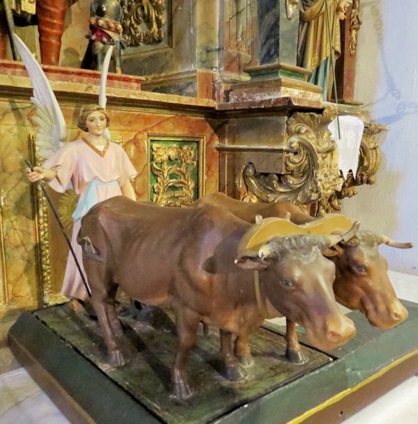 Y el ángel, que tiene bien visto a Dios y tiene mucho conocimiento de las cosas, no se embelesa y mira a la yunta de bueyes y a la tierra que hay que arar, porque aunque tiene alas, pisa el mismo suelo que los bueyes, mientras que Isidro, sin alas, se entrega a sus vuelos personales. (Y luego dicen que si ahora...)