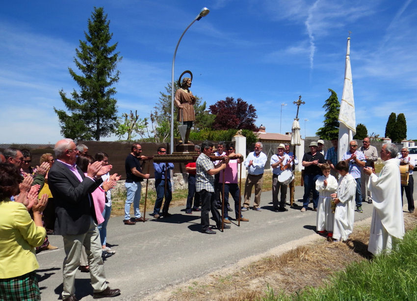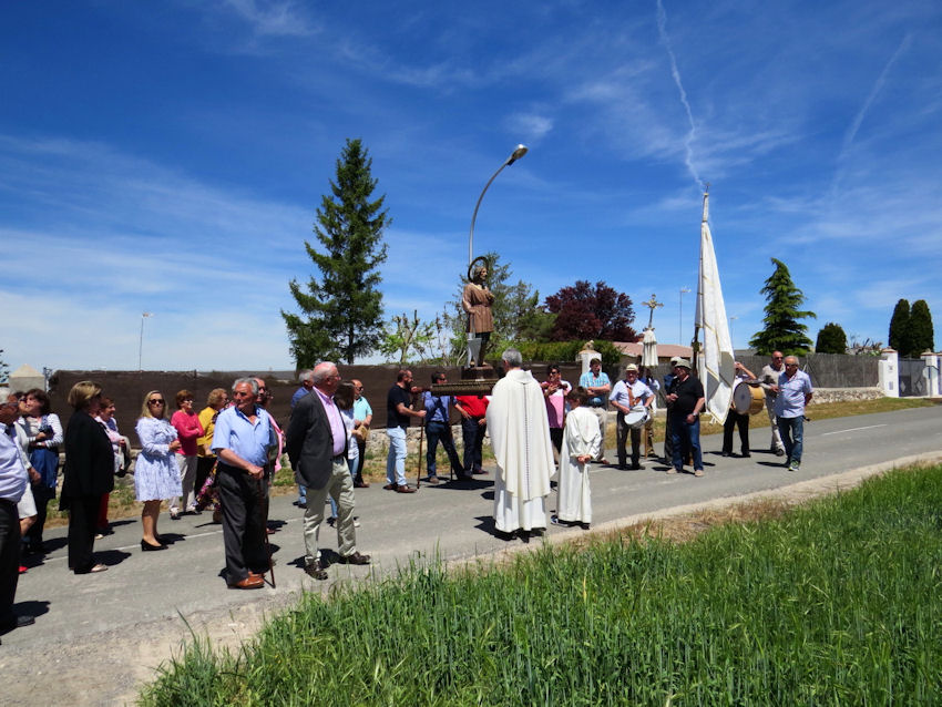 Prosigue la procesión hasta, pasado El Barrero, que es espacio que vemos a la izquierda de esta fotografía, detener la imagen del santo para orientarla hacia el campo que se abre hacia la sierra y ahí continuar con la liturgia religiosa.