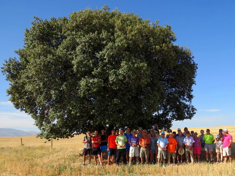 foto de grupo bajo la encina. Allí fue el reparto de rajas de sandía,