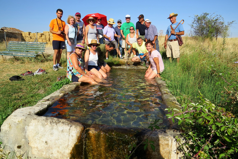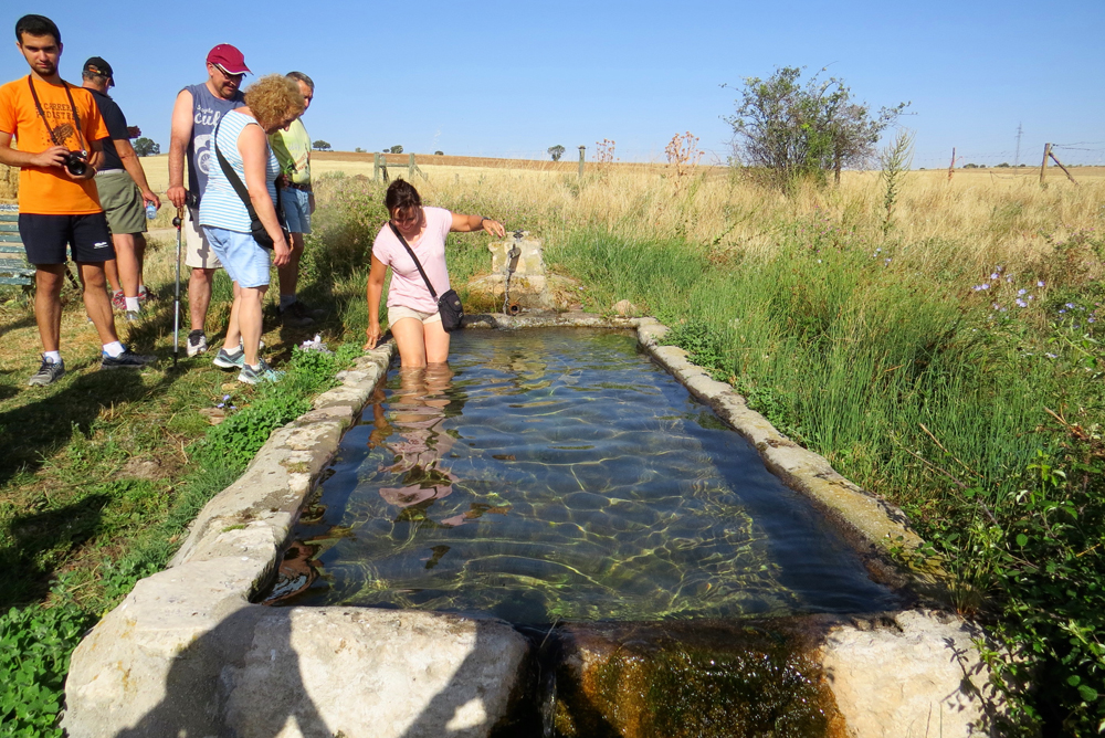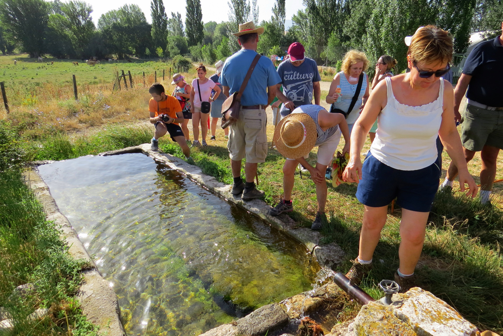Carlos bautizó esta marcha como "la de los humedales" porque transcurre por parajes donde el agua mana. Esta fuentona pertenece a La Rumbona, pero por fortuna su acceso y disfrute es libre. El agua procede de un sondeo de varios cientos de metros de profundidad, pero es tal la fuerza de los manantiales y corrientes, que logran superar la presión que ejerce el mismo agua dentro de la verticalidad del tubo, y saltar al exterior. |