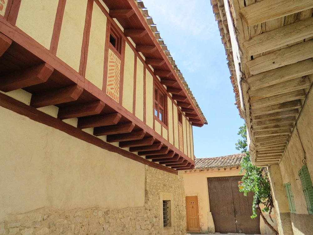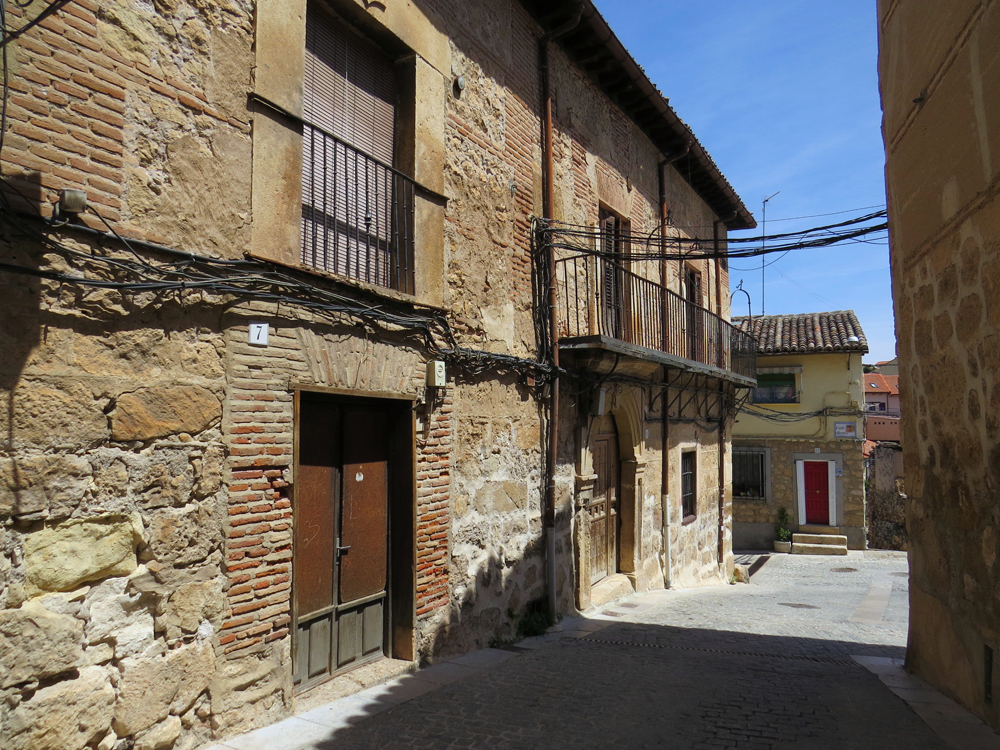 Esto es Castilla pura, por lo que comparte los estilos y técnicas arquitectónicas de la Castilla ancha.. Tampoco aquí han conseguido enterrar las madejas de cables y eliminar el estropicio que causan. |