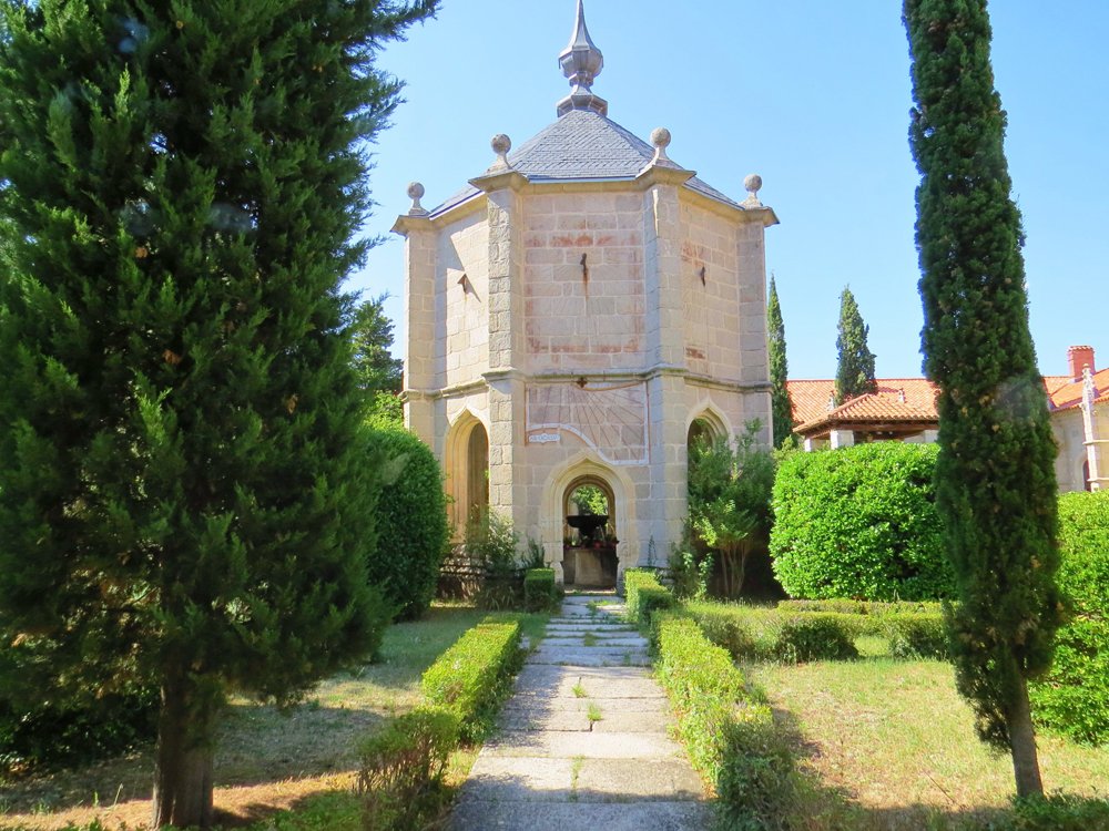 El patio interior no es visitable, pero se puede observar desde los claustros. En este templete vemos cuatro relojes de sol. Desde el orto hasta el ocaso..... |