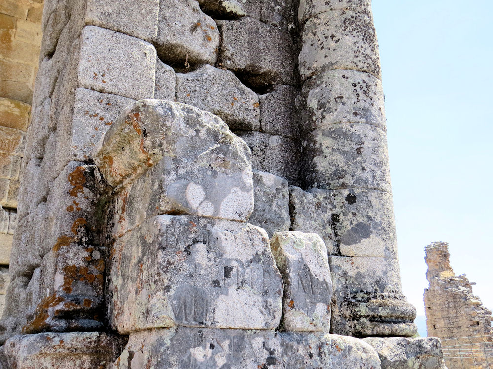 Aquí está grabado el nombre de Marco Fido Macro (en latín Marcus Fidius Macer) fue un hispano natural de la ciudad de Cáparra en la provincia romana de Lusitania, que vivió en la segunda mitad del siglo I., quien mandó construir y sufragó el arco tetrapylum cuya bóveda constituye un tratado arquitectónico en sí mismo.