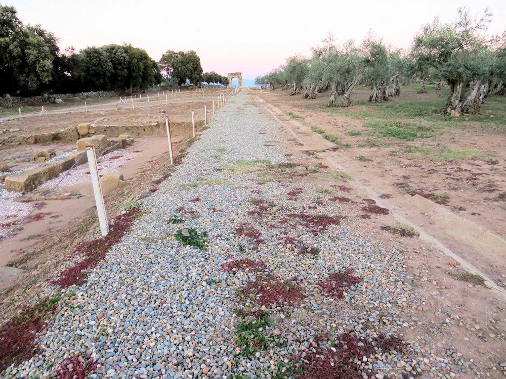 Vista del arco tetrapylum desde el kardo máximus. Este arco es el único conocido en España.