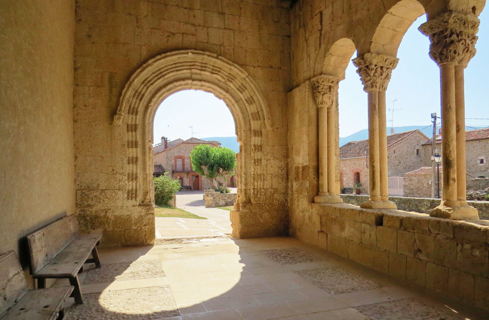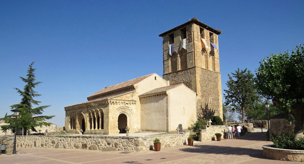 Iglesia románica dedicada a la advocación de San Miguel.Una de esas coincidencias es la de que varios del grupo, ya habíamos visitado este pueblo hace bastantes años y, la imagen que reteníamos, era la de una humilde y pequeña población rodeada de prados y cercas, con las calles pobladas de cardos, maleza y boñigas, algo muy común, y natural, en todos los pueblos de Segovia hasta que les llegó la renovación.
