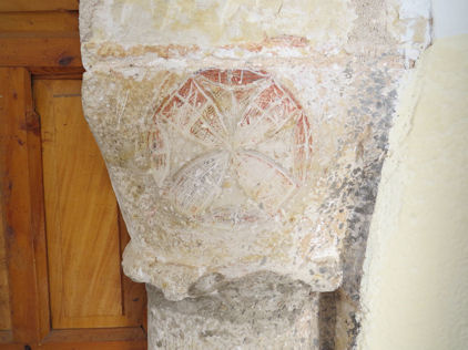 La cruz de los templarios permaneció en su color rojo inalterado durante siglos... hasta la llegada de la dictadura, donde molestaban hasta los colores, y por eso fue borrado, en un acto de vandalismo oficial de los muchos que impunemente perpetraron nuestros particulares talibanes.