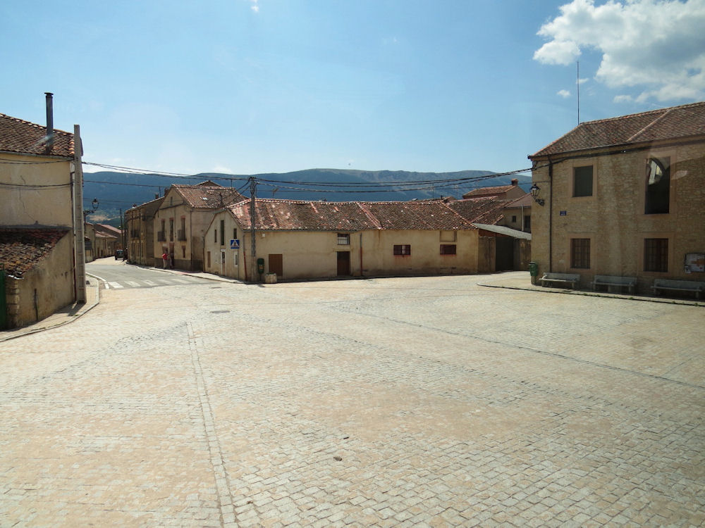 Caserío del centro del pueblo con el fondo de los Montes Carpetanos.