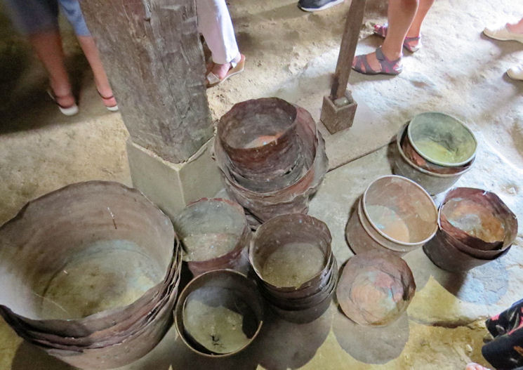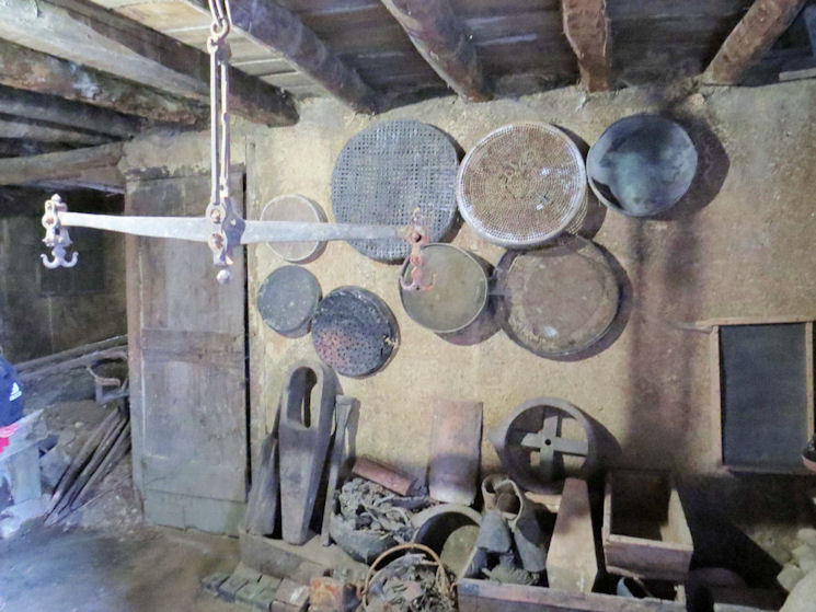 El martinete es una enorme viga en cuyo extremo se inserta una pieza de acero destinada a moldear el cobre recién salido de la fundición. Lo curioso de este ingenio es que lo movía diversos mecanismos impulsados por la fuerza de una gran rueda accionada por el agua del río Cega.