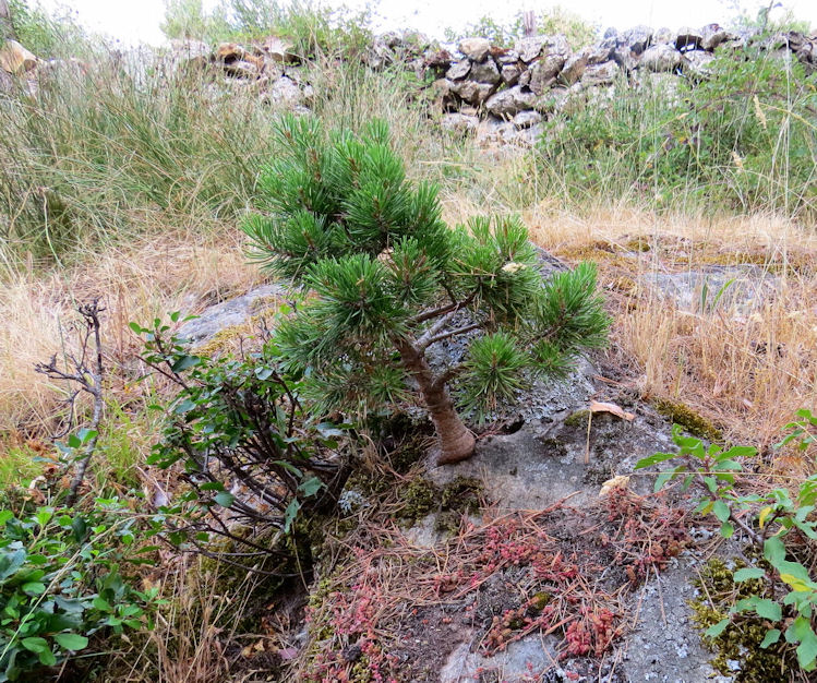 Durante el paseo por la hermosa senda paralela al Cega, observamos este pino que, por nacer de las entrañas de una roca, sobrevive como bonsai natural, con este lustre y esta viveza.