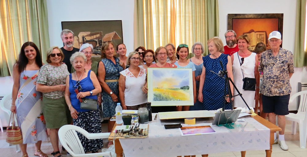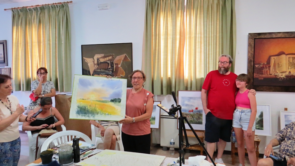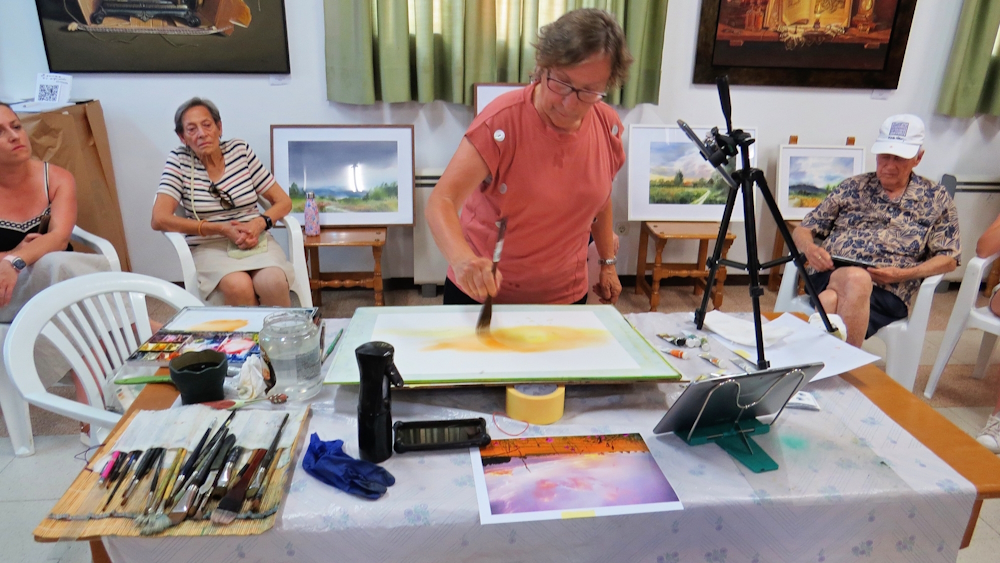 Durante la composición los asistentes formulamos preguntas y observaciones que Feli atendió sin dejar de avanzar en el cuadro. Cualidad propia de profesora que es de la Agrupación Española de Acuarelistas, AEDA Madrid.