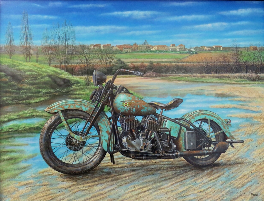 Ricardo Renedo explica a través de esta composición a medio hacer, su laboriosa técnica de sucesivas capas a partir de la inicial a lápiz, hasta conseguir ese efecto de relieve y realidad.